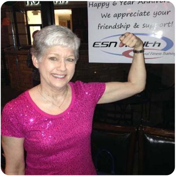 Janet McCormick has been a dedicated ESN Health client, since 2008. She lost 37 pounds of fat (improving her body fat by 48%) and 4 dress sizes! Janet lowered her cholesterol 30 points and went from 162 to 129 pounds! She is now rocking her new body in this picture at our 6 year anniversary…